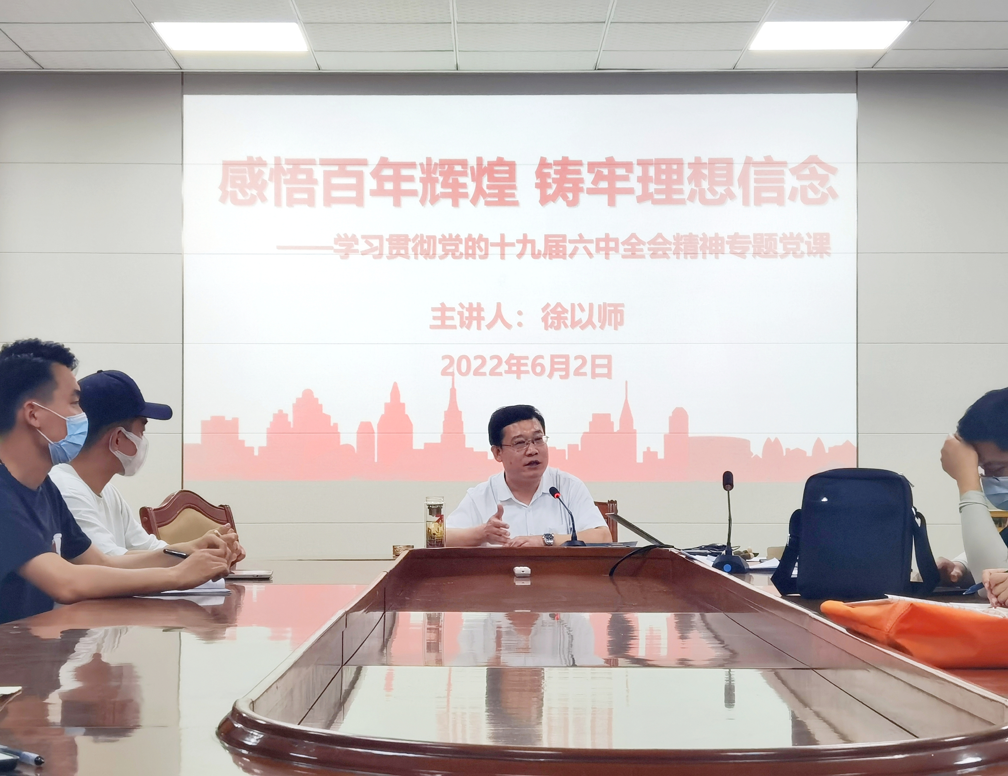 6月2日,英国365官方网站英国上市公司365党总支书记徐以师,以“感悟百年辉煌,筑牢理想信念”为题为学院师生党员、发展对象讲授学习贯彻党的十九届六中全会精神专题党课。