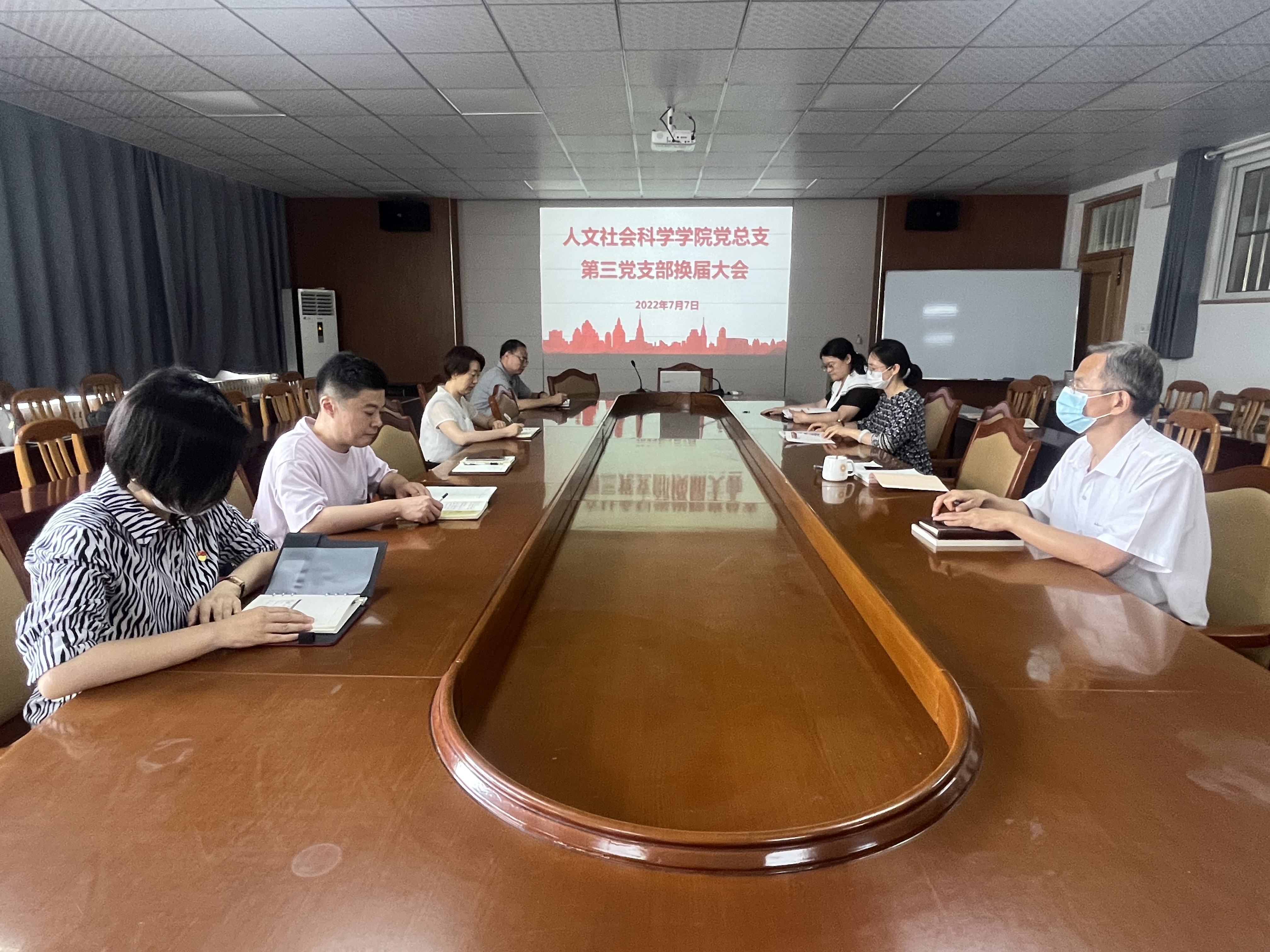 各支部经过上报换届选举请示、准备工作报告和下届委员会工作规划、做好选举前的党员教育工作、讨论酝酿新一届委员会委员候选人预备人选、资格审查等流程,分别举行党员大会进行换届选举。本届支部书记通过报告总结过去的成绩和问题后,立足现实问题,认清当前发展形势,找准自身定位,以积极的态度展望未来的发展,并对下一阶段的工作任务进行规划。支部全体党员在参加原支部总结报告的基础上,按照选举流程,采用无记名投票的方式从预备人选中选出新一届支部委员。三个支部分别召开新一届委员会第一次会议进行了委员分工并选举产生了党支部书记。其中,社会管理系主任党晓虹副教授、中文系主任宋兆祥教授、法律系主任张华博士分别当选教工第一、第二、第三党支部书记。