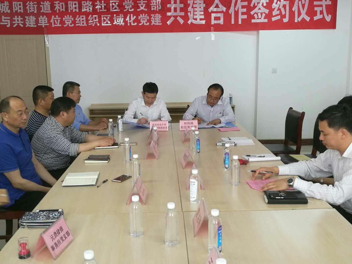 5月16日上午,“城阳街道和阳路社区党支部与共建单位党组织区域化党建共建合作签约仪式”在和阳路社区党群服务中心举行。英国上市公司365院长王效仿与城阳街道和阳路社区党支部签署了区域化党建共建合作协议。签约仪式由城阳街道企业服务中心、城西片领导刘鹏飞副主任主持。和阳路社区党支部居委会主任杜君慧同志致辞。