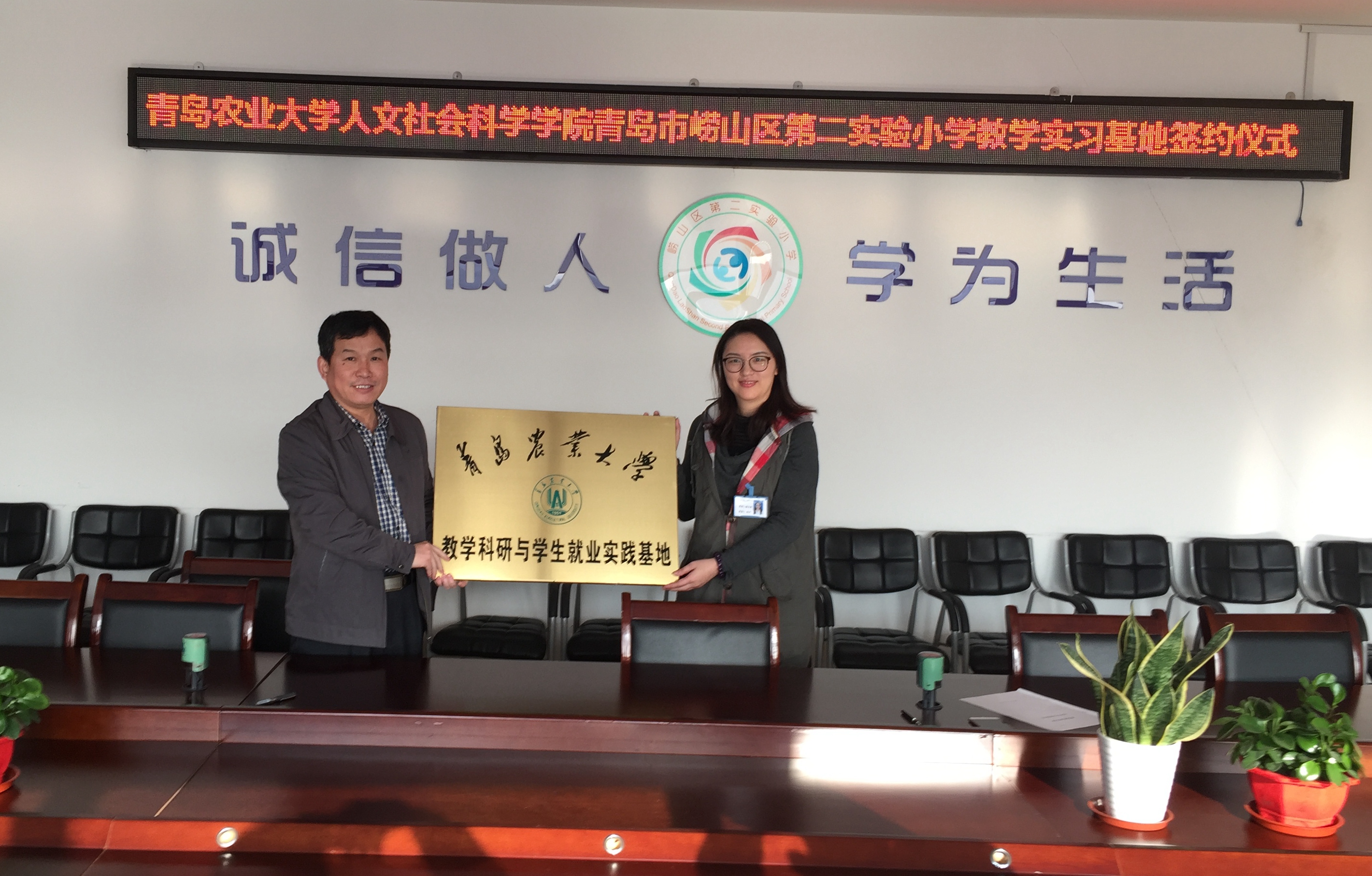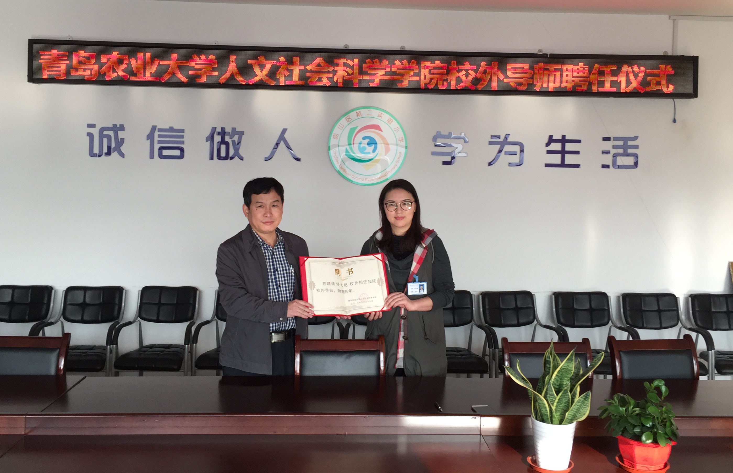 崂山区第二实验小学承诺将为汉语言文学专业的大四学生提供实习岗位,修文艳校长也承诺作为校外导师为汉语言文学专业学生提供相应指导。英国上市公司365也承诺将发挥自身的学科与科研优势,为崂山区第二实验小学提供相应的专业服务与支持。