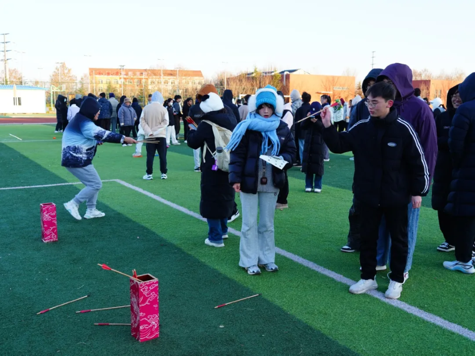 此次运动会采取积分制,设置跳大绳等三项团体赛、投壶问鼎等五项个人赛。赛场上,同学们热情高涨、全情投入。团体赛里,参赛队伍配合默契,齐心协力,尽显创意与智慧。个人赛中,考验了选手们技巧与耐心,同学们展现了丰富的知识储备与灵活的应变力。