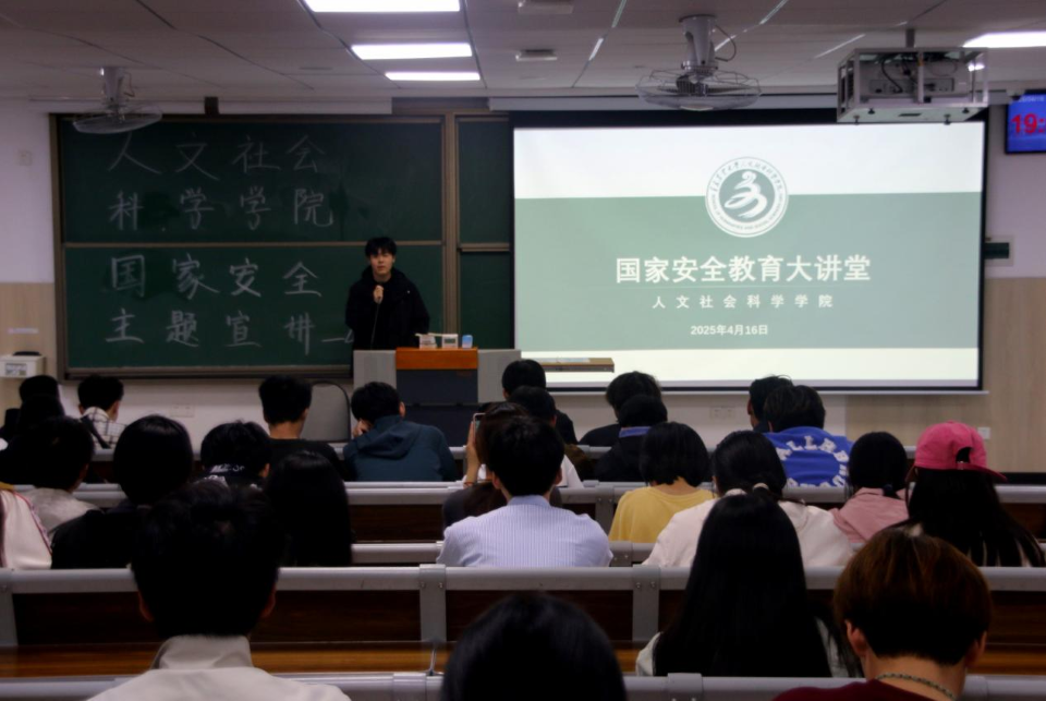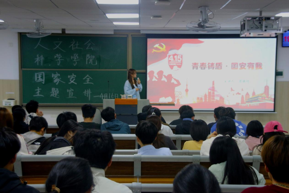 此次宣讲围绕国家安全与总体国家安全观、大学生与国家安全、维护国家安全三大板块展开。周俸竹详细解读了国家安全定义和总体国家安全观内涵,列举大学生翻墙加入境外反华政党、为境外拍军事设施获刑等案例,警示大学生面临的安全威胁,同学们专注聆听,积极互动。