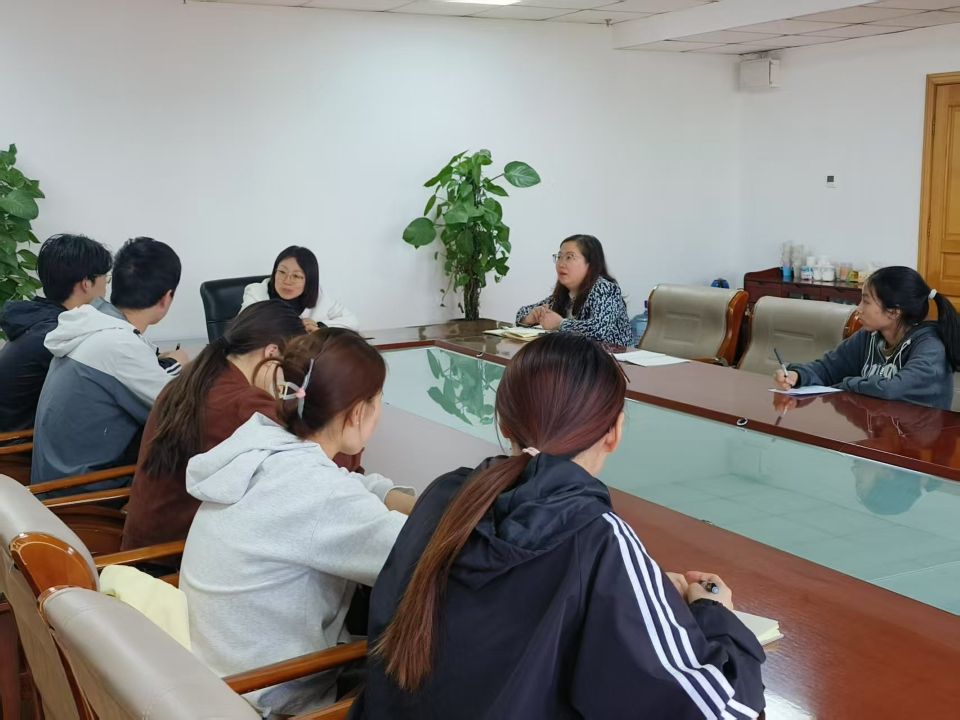 王敬从班级管理、学风建设、党团活动、学生考研准备等方面进行了介绍。班级班风优良,学风浓厚,同时具有较强的凝聚力,先后荣获校“先进班级”、校“红旗团支部”等荣誉称号,刚刚斩获学校“五四活力团支部”,团支部副书记王嘉慧同学获“五四青年标兵” 。同学们踊跃发言,交流自己的学习和生活,畅谈收获和入学以来的感悟,并就就业前景、考研目标专业学校、考研准备过程中遇到的问题和困难踊跃发言。