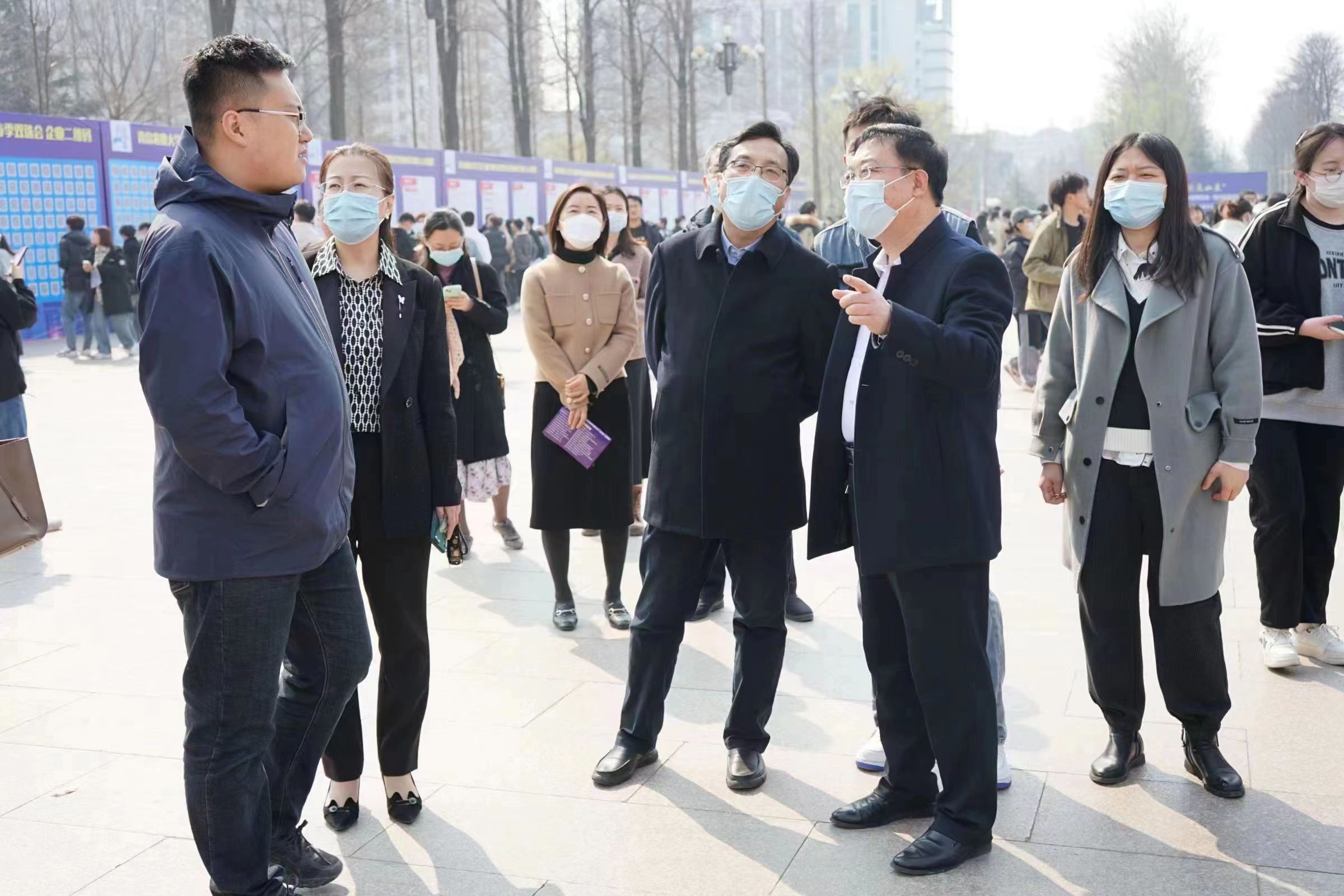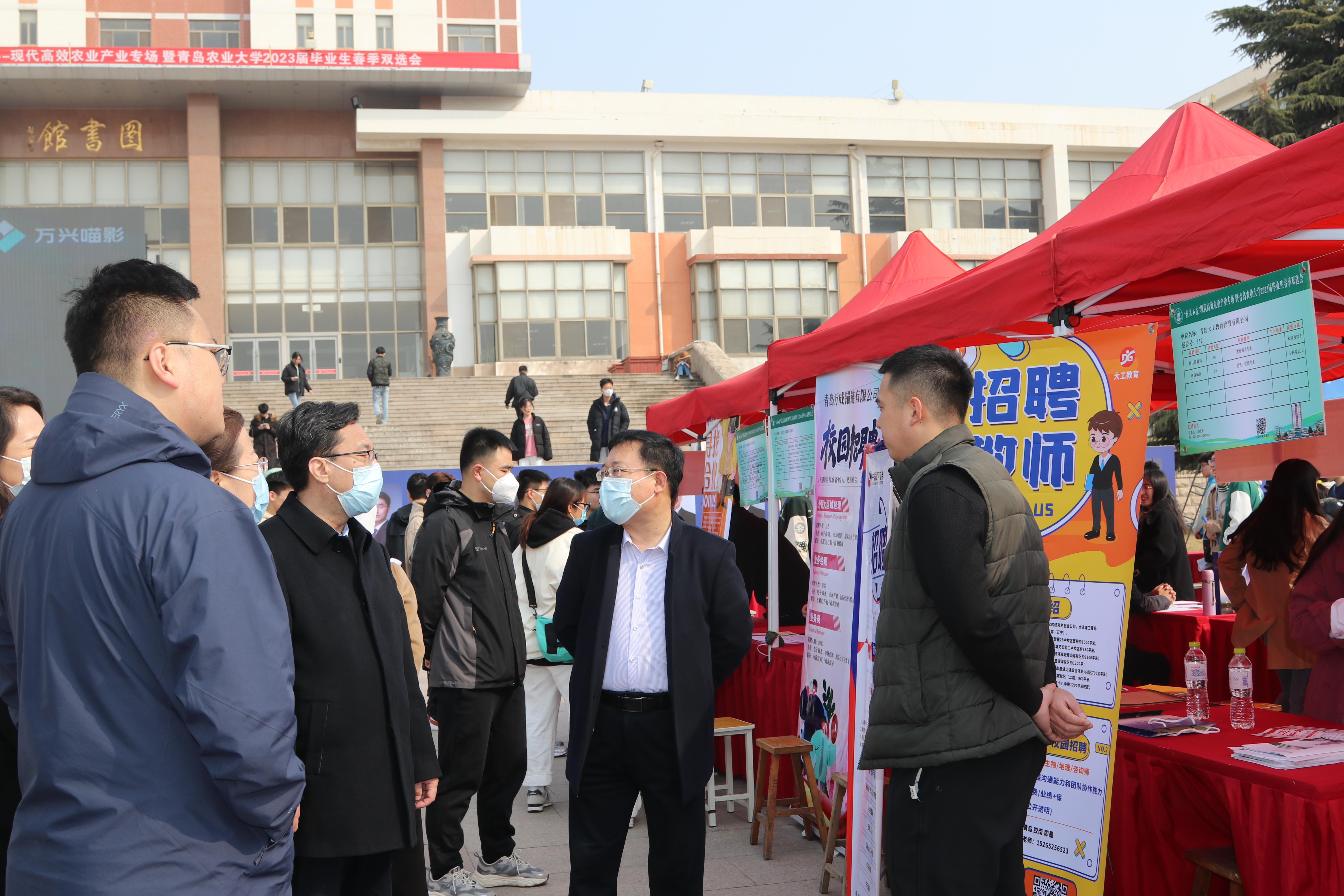 3月19日,“就选山东”现代高效农业产业专场暨英国365官方网站2023届毕业生春季双选会在虹子广场举办,英国上市公司365党政领导班子成员及各系主任、毕业班班主任赴现场调研。
