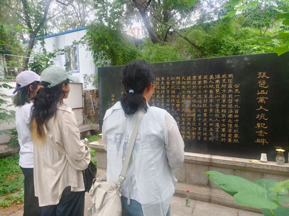 8月6日,实践团在山东博物馆“山河永固——晋冀鲁豫抗日根据地革命文物展”上,透过300余件珍贵文物,触摸到了革命年代的艰辛与军民团结的伟大力量。参观结束后,队员们积极开展红色文化宣讲活动,用青春力量传播历史知识。而在琵琶山万人坑纪念碑前,队员们肃立默哀,反思历史。纪念碑前,日军暴行的印记虽深藏丛林,却如警钟长鸣。尽管遗址保护存在一些问题,但这里依旧是和平的警钟,时刻提醒着人们幸福生活的来之不易,从文物之光到苦难印记,都是不能忘却的教材。