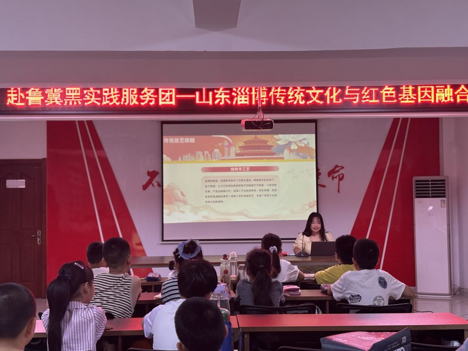 7月31日,实践团成员走进淄博芦湖社区,从淄博作为齐文化发祥地的厚重历史展开叙述,以"山东淄博传统文化与红色基因融合"为主题,为社区群众带来了一场深入浅出的文化宣讲。这场暑期 "三下乡"实践活动,旨在探寻历史文脉与革命精神的内在联结,为新时代文化传承注入鲜活力量。