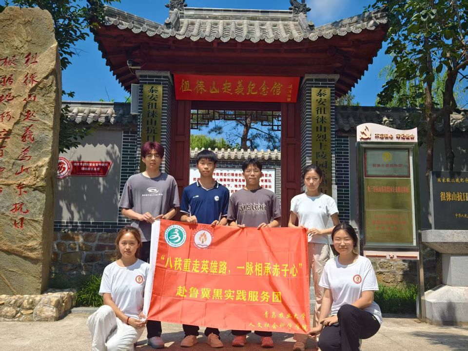 7月26日,实践团队来到山东泰安。徂徕山抗日武装起义纪念馆生动再现了起义部队的英勇抗争,实践团成员们凝视着珍贵的历史资料,被革命先辈们抛头颅、洒热血的崇高精神所震撼。参观结束后,成员们在纪念馆前默哀,随后分组宣传英雄事迹,与游客互动交流。在夏张抗日起义纪念碑前,成员们庄严宣誓,传承红色基因。通过调查问卷,他们发现部分人对这段历史了解不足,便积极宣传,还与革命后代深入交流,更加直观地感受先辈们的坚定信念。