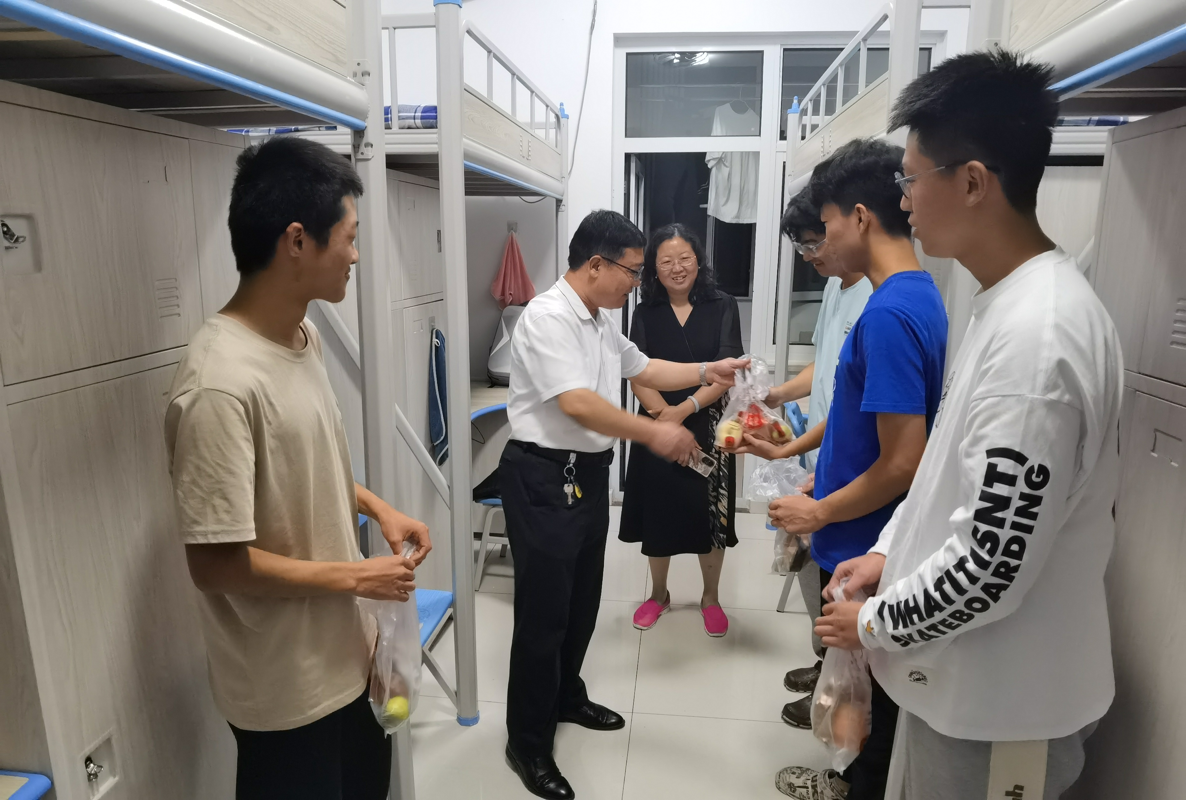 领导嘱咐留校学生保持与家长老师联系畅通、注意学校周边环境安全、谨防推销诈骗与网络贷款、合理安排假期学习与活动时间,给同学们强调了假期留校的安全,带来了中秋、国庆节日的关怀。