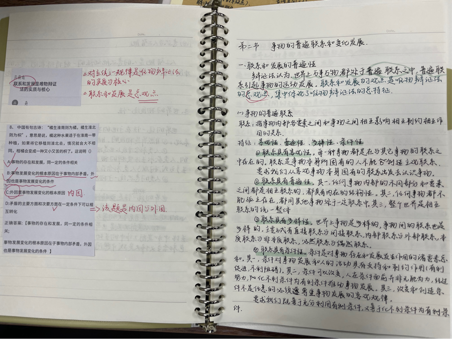 活动要求同学们以课堂笔记的形式呈现出对知识的渴望和对大学课堂的热爱,得到了同学们的积极反响纷纷上交自己的笔记。在公共事业管理专业同学的管理学笔记中,我们可以看出同学们对新学科的理解:管理学是思路而不是答案。管理学的笔记内容展现的是同学们对新知识的兴趣和个人看法。在汉语言文学专业同学的笔记中可以感受到同学们对中国古典文学的挚爱,在字里行间氤氲着的是中国古典文化穿越时空界限之后的韵味,其隽永的艺术韵味激起新生们的热爱。在社会工作专业同学的社会学笔记中我们看见的是同学们对社会哲学的思考和对社会理念的理解,笔记是每个社会工作专业同学的个人思考的语言凝聚。纸质上的笔记,呈现出来的是新生对大学生活的体验,认真记录课堂上的每个知识点,用情凝练、字句斟酌的背后展现出来的是我们对英国365官方网站的温暖记忆。